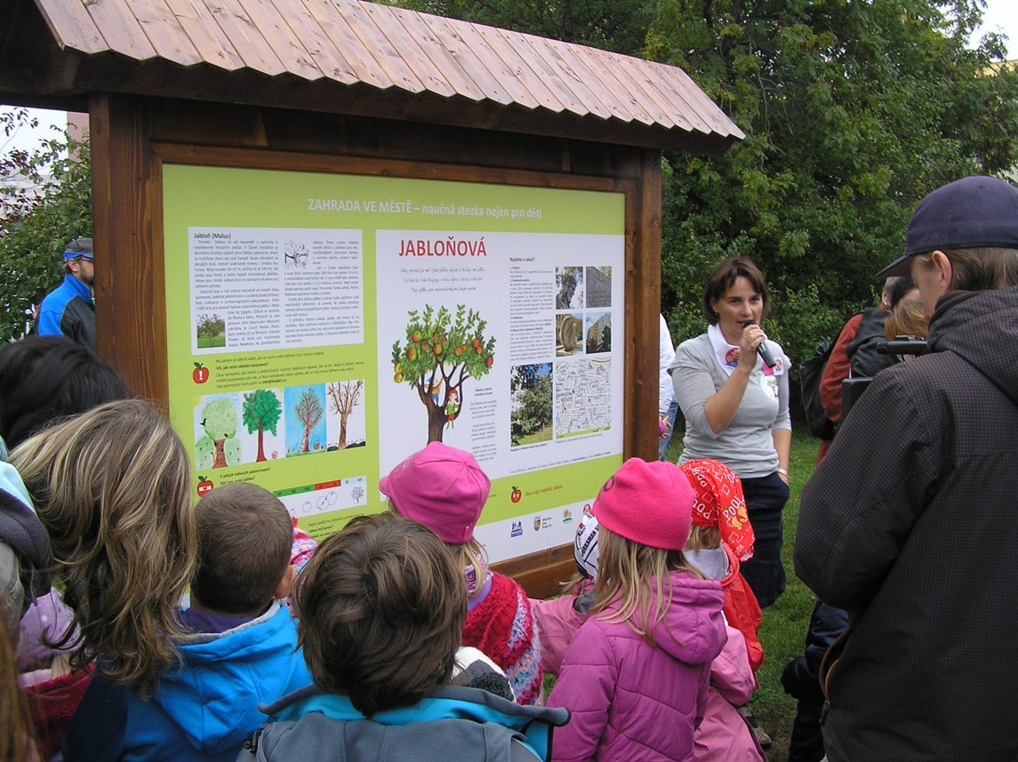 Nápad vytvořit na Zahradním městě naučnou stezku v Klubu K2. Cílem je občanům a hlavně dětem nejen zpestřit procházky v okolí jejich bydliště a přinést jim nové informace či podněty k zamyšlení, ale zejména vytvořit vztah k místu ve kterém žijí. Tematické zaměření stezky vyplynulo tak nějak přirozeně samo. Vždyť ulice Zahradního města nesou názvy rostlin. Jako první byly osazeny čtyři ulice – Jabloňová, Topolová, Ostružinová a Malinová. Každá tabule obsahuje naučnou část určenou dospělým či starším dětem a pak otázky a podněty pro menší děti. Naučná část nabídne dospělým zajímavé nebo méně známé informace o dané rostlině, pro děti je zvolena hravější forma – prostřednictvím celé řady otázek, pokusů a cvičení dobře poznají život rostliny. Tento zážitkový způsob učení by měl být nejen zábavnější, ale děti by si měly získané informace také lépe zapamatovat. Primárně je stezka určená předškolákům a jejich rodičům, ale zajímavá bude jistě pro všechny věkové kategorie.